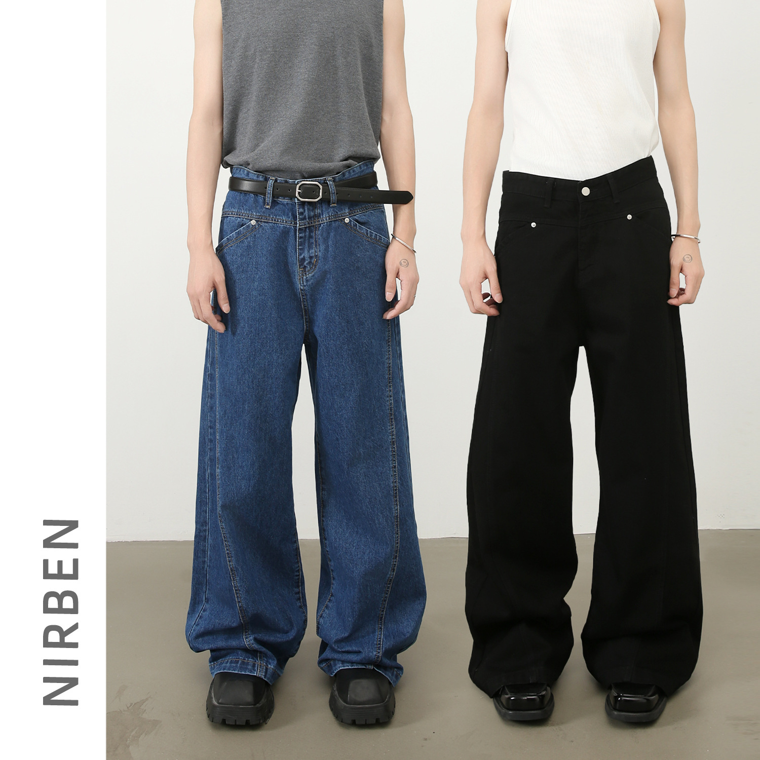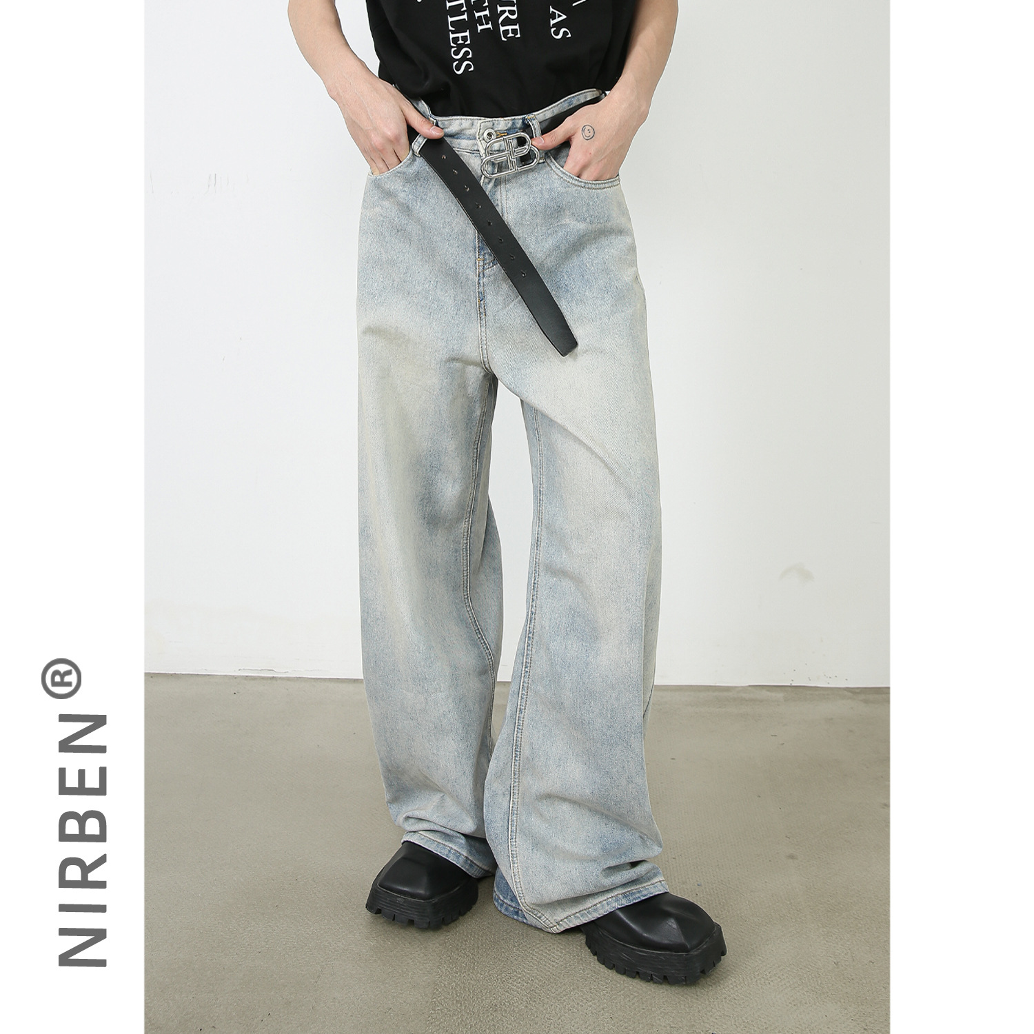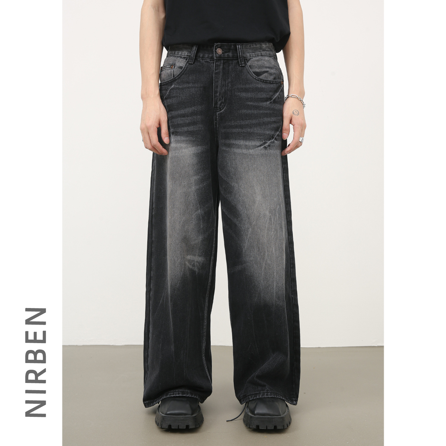 Nirbenデニム | アメリカのレトロでゆったりしたワイドジーンズ男性のデザイン感高級感のあるごろつきが街のズボンを揚げます。
