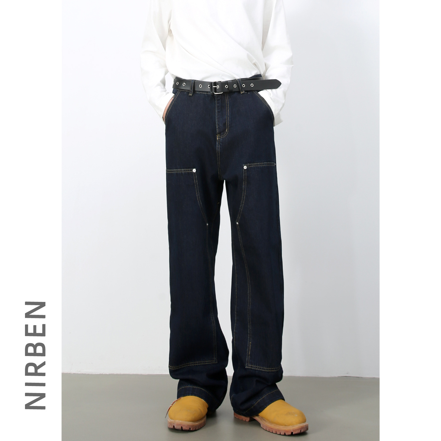 Nirbenカウボーイ | 原色レトロな木こり工装ジーンズ男性アメリカ式高街潮牌ゆるいストレートパンツ