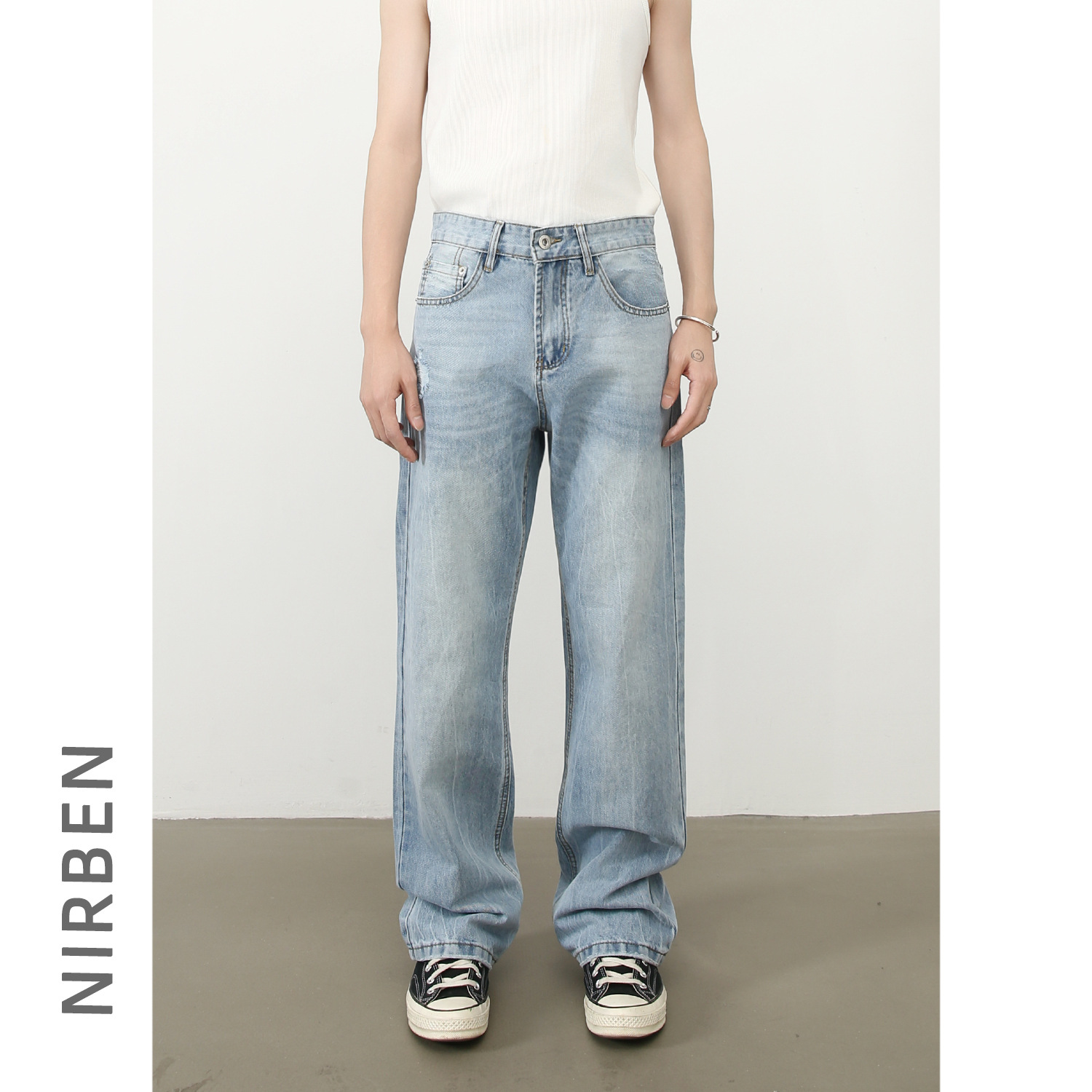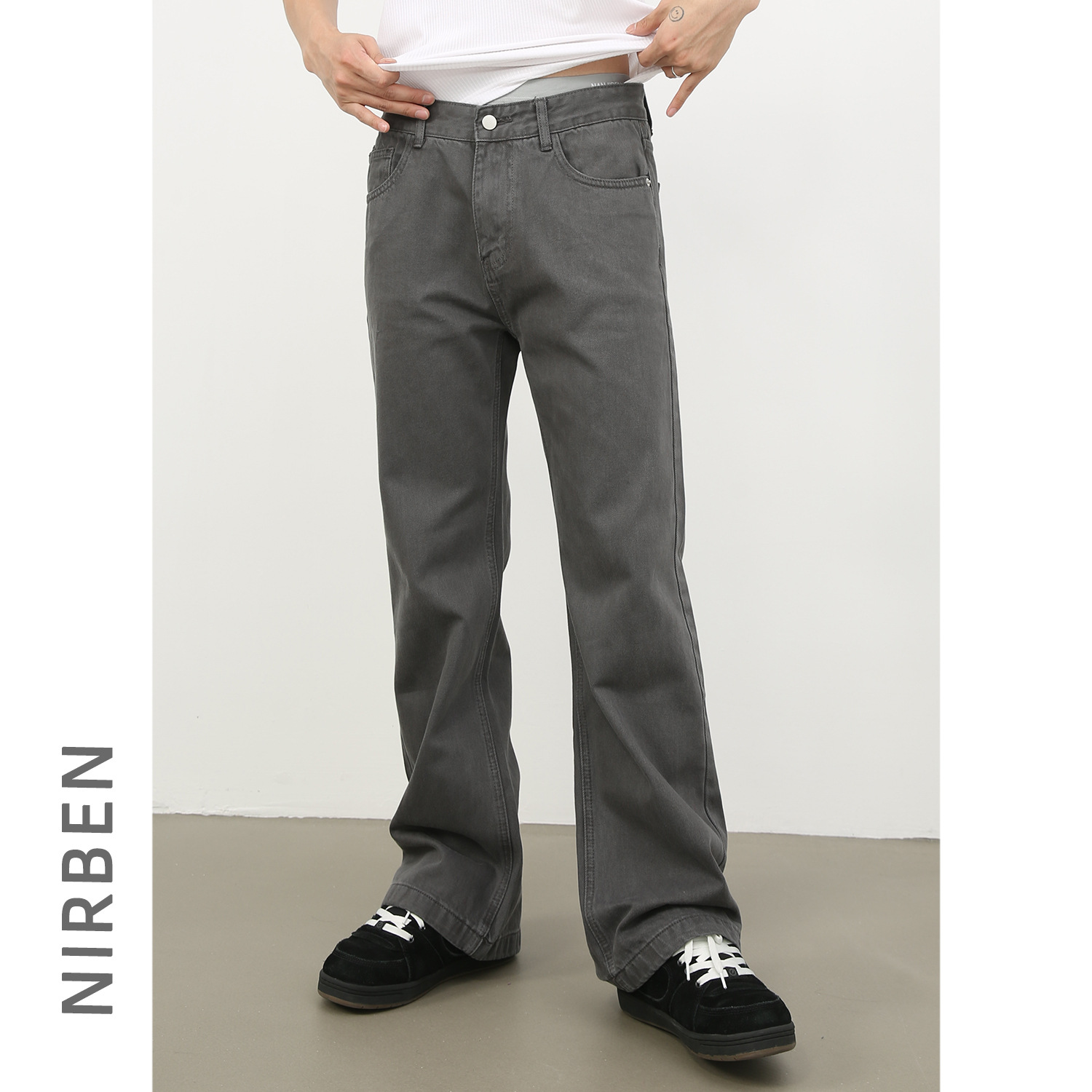 Nirbenデニム | アメリカのレトロな水洗いマイクロラップジーンズ男性グレーのファッションブランドのゆるいストレートカジュアルパンツ