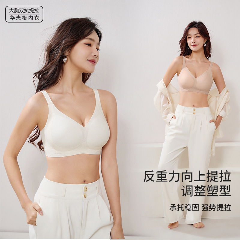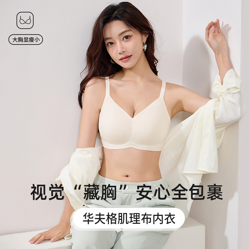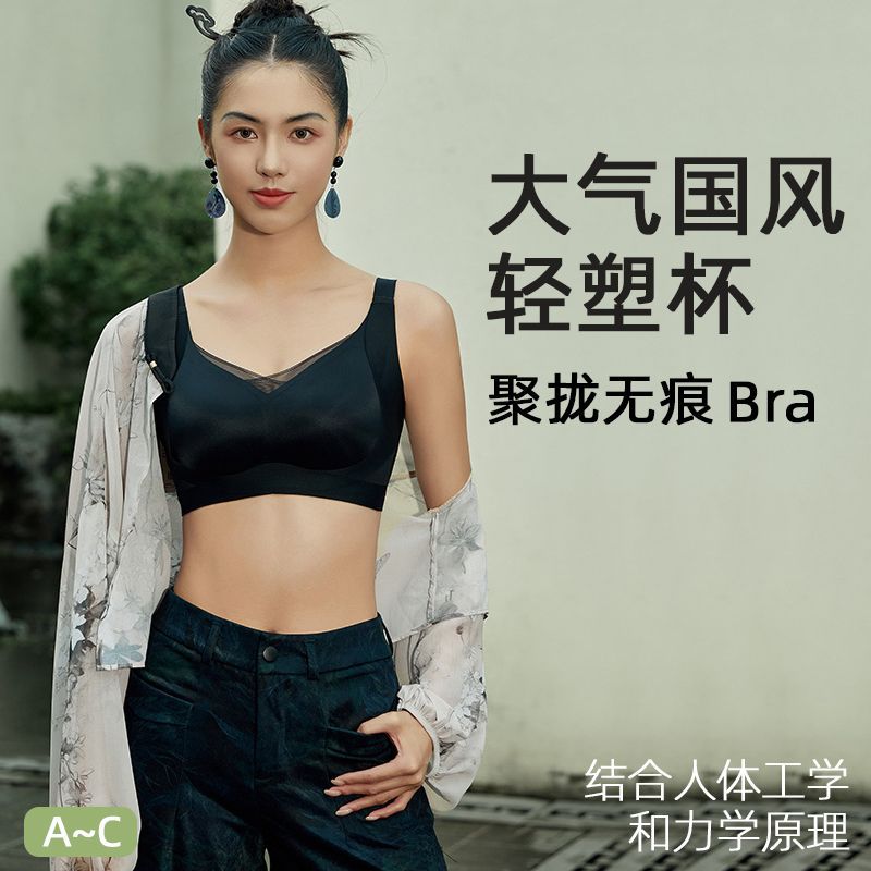 春夏新品レディースブラジャーサイド収纳痕无しスチールリングなし薄いモデルなめらかで快适な美背下着女性
