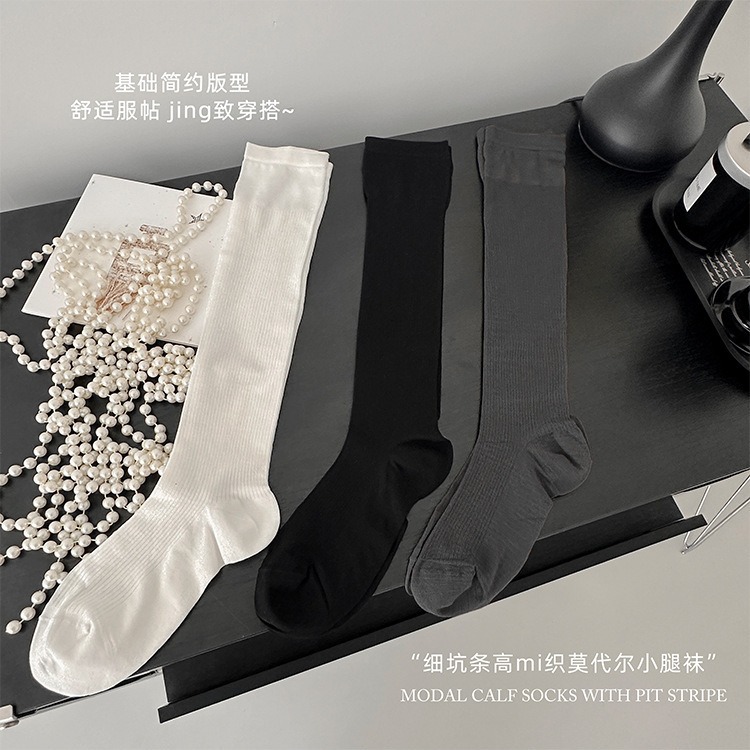 24夏の新型細坑条高密織ふくらはぎ靴下80本のモーデール繊細で柔らかい肌に優しい靴下女性