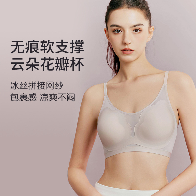 夏の新作の花びらの超薄いカップの女性のブラジャーの網の糸は軽くて涼しい一枚の形の無痕の下着の女性をつなぎ合わせます。