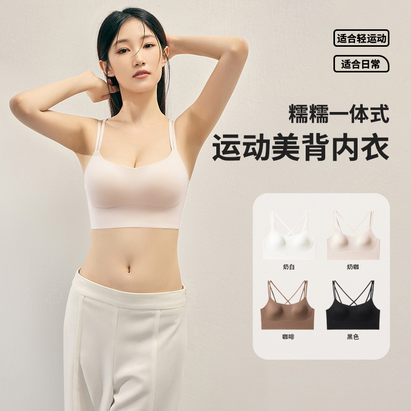 新2491ベストスポーツ下着ゼリー片クロス肩ひも緩震裸感カバー固定カップ美背ブラジャー