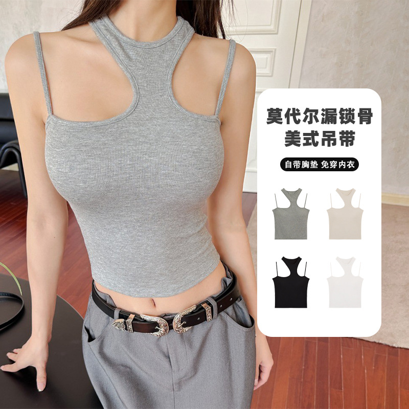 ネットで話題の春秋新作セクシーな背中見せ、多用途なプリーツ入りホットガール風胸パッド付きインナーベストキャミソール(女性用)