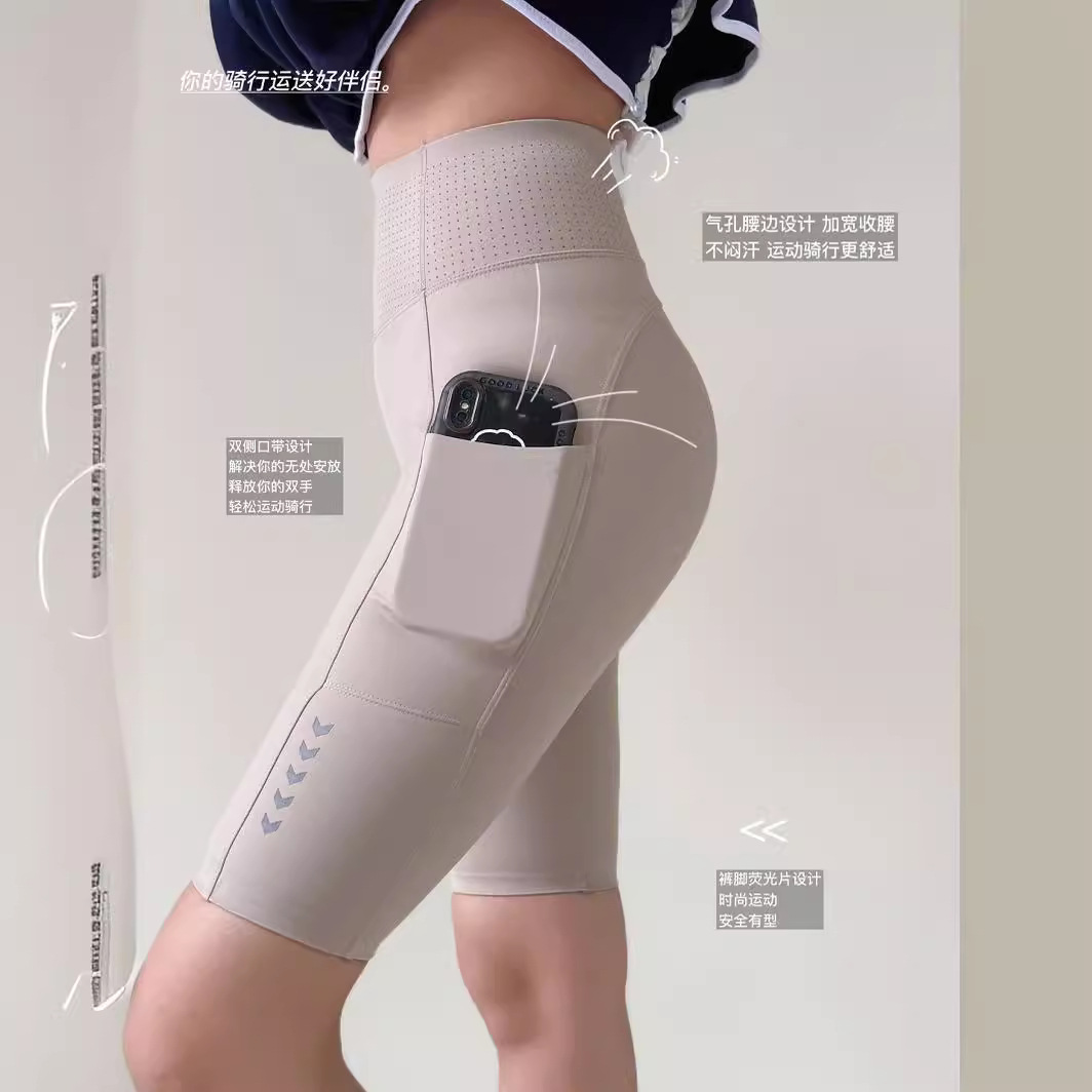 新商品の春夏ゼリーはお尻を包んで5分のレギンスの女性のタイトな運動の高腰の半ズボンの携帯電話のポケットのサメのズボンを包みます。