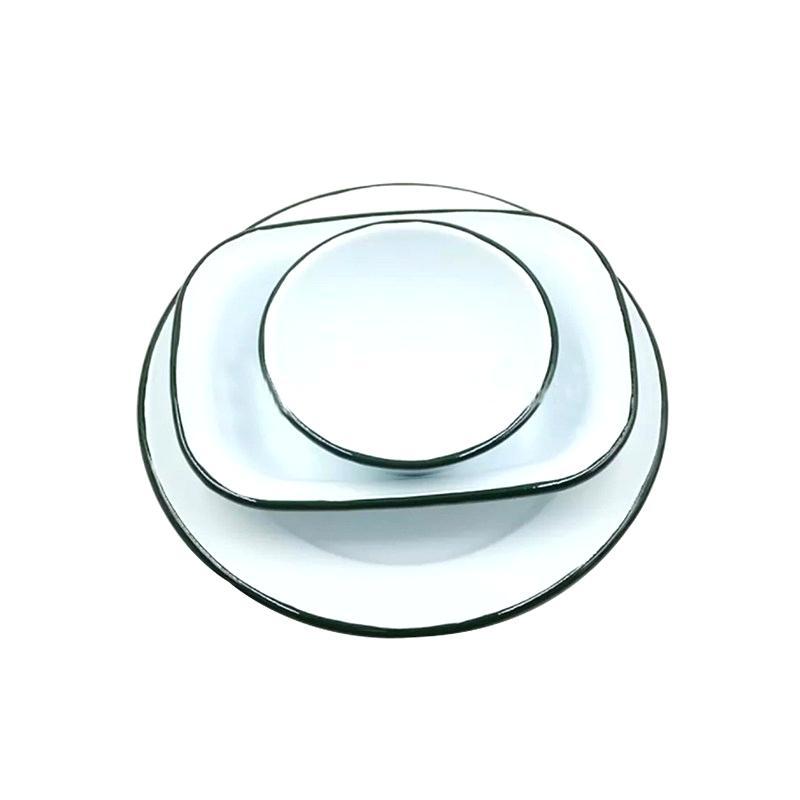 対外貿易の源のメーカーのエナメルの食器のエナメルの金属の食器の食器の食器の皿は組み合わせて家庭用の屋外でドライブして旅行して携帯しやすいです。