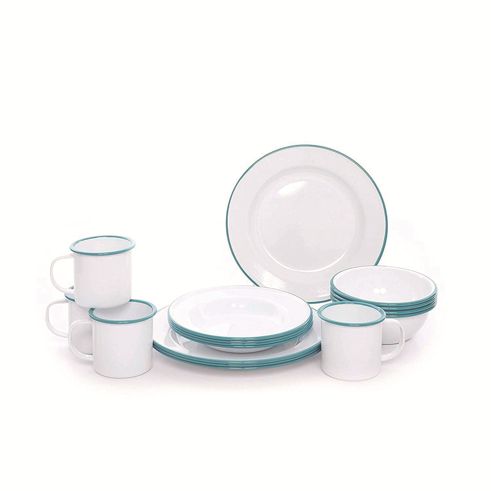 輸出エナメル調理器具セットピクニック皿セット金属エナメルカップ食器セット洗浄しやすい