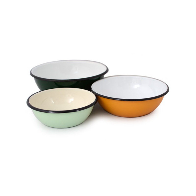 対外貿易輸出品質保障メーカー卸売りエナメル金属巻き縁に墨をかけてエナメルボウルの復古的な洗浄しやすい食器