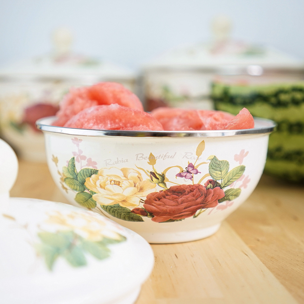 メーカー生産卸売り欧米品質対外貿易輸出家庭用エナメル攪拌ボウル金属エナメルサラダボウル