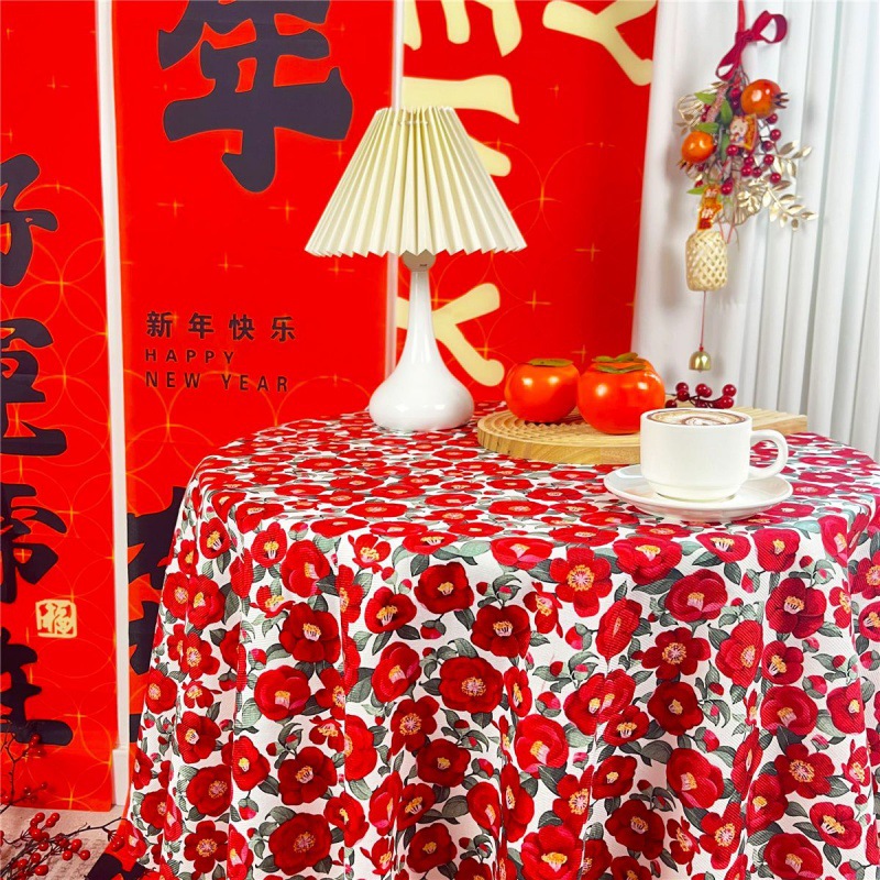 韓国insおめでたい新年格子テーブルクロスDIY生地カーテン野食布が背景の家庭装飾を飾っている