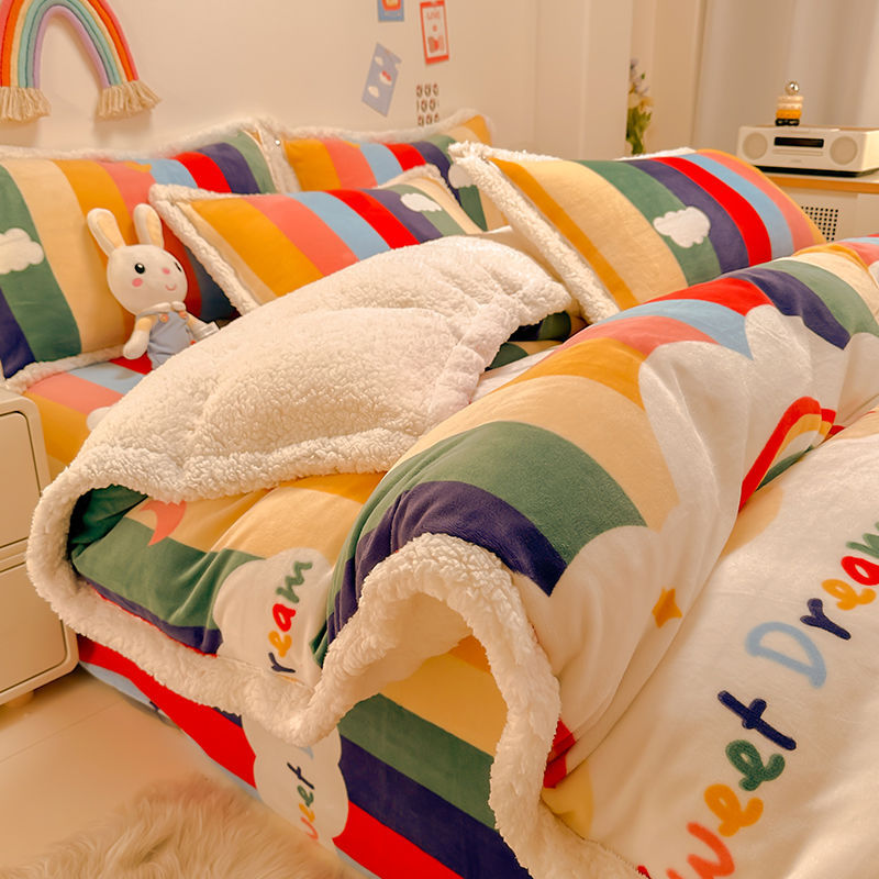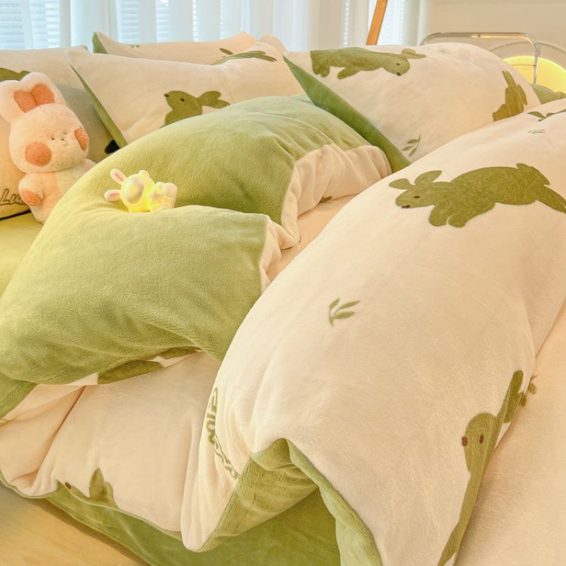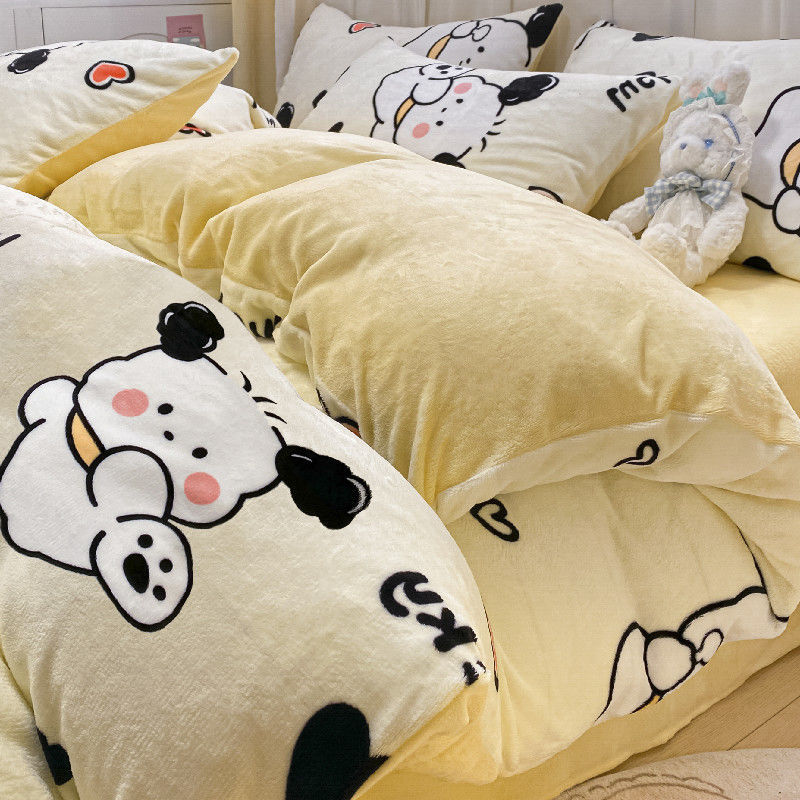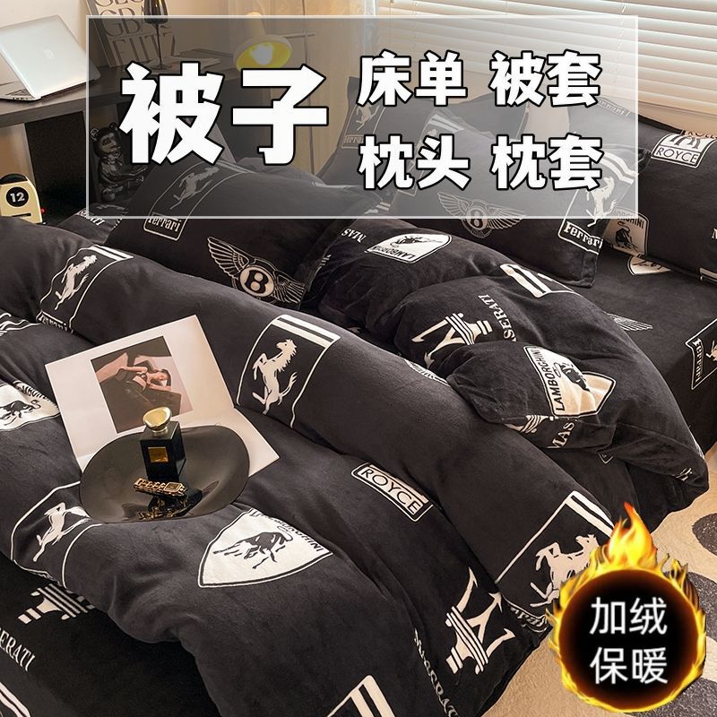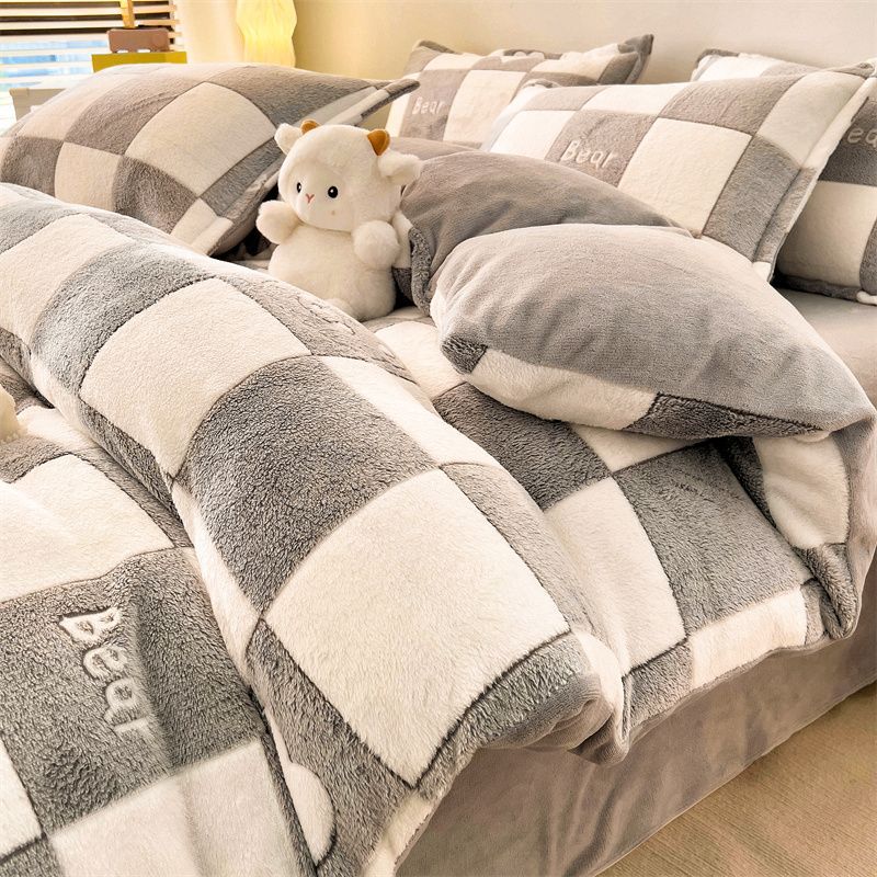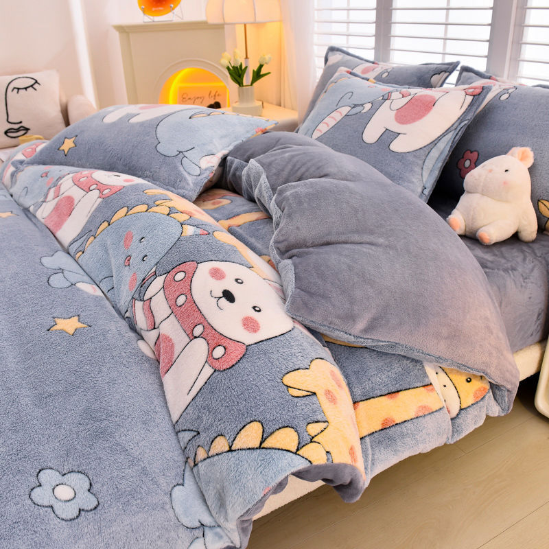 シーツ4点セット冬の牛乳のベルベットとベルベットの両面のベルベット寮の布団カバー3点セットベッドのベッドカバー金
