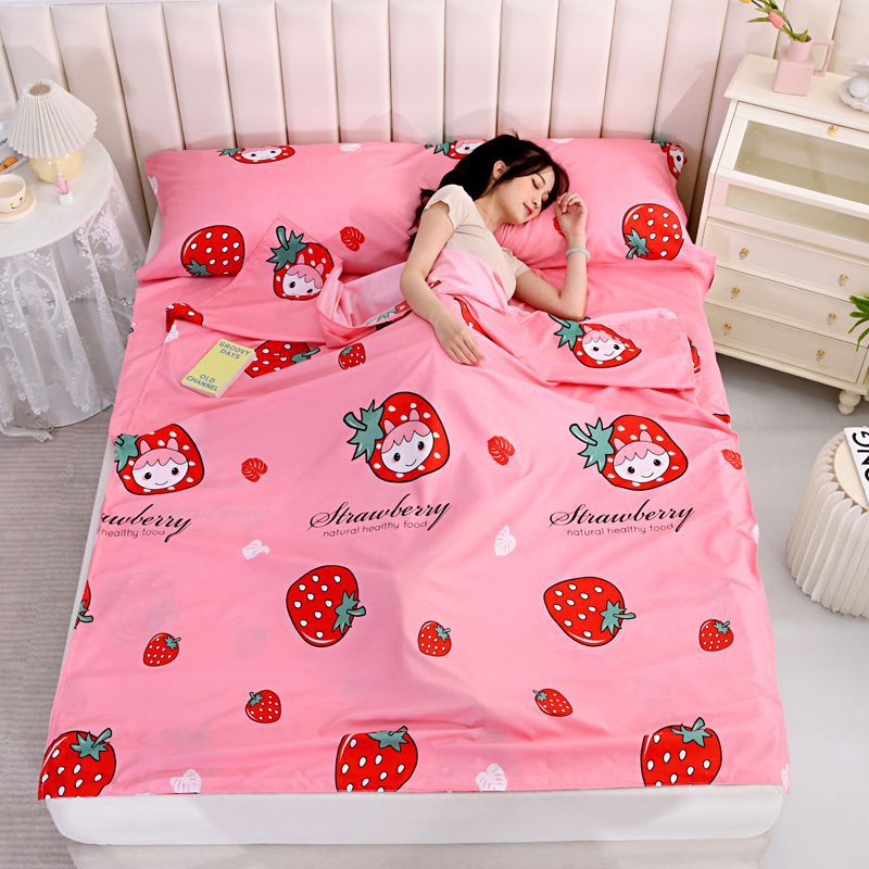 肌にキスして旅行する寝袋の携帯式の汚れたシーツは出張してホテルのホテルに泊まります。