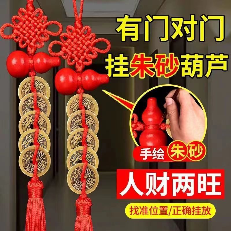 五帝銭門対門ストラップ桃木瓢箪五帝銅銭真品中国結ストラップ六帝銭新型ストラップ