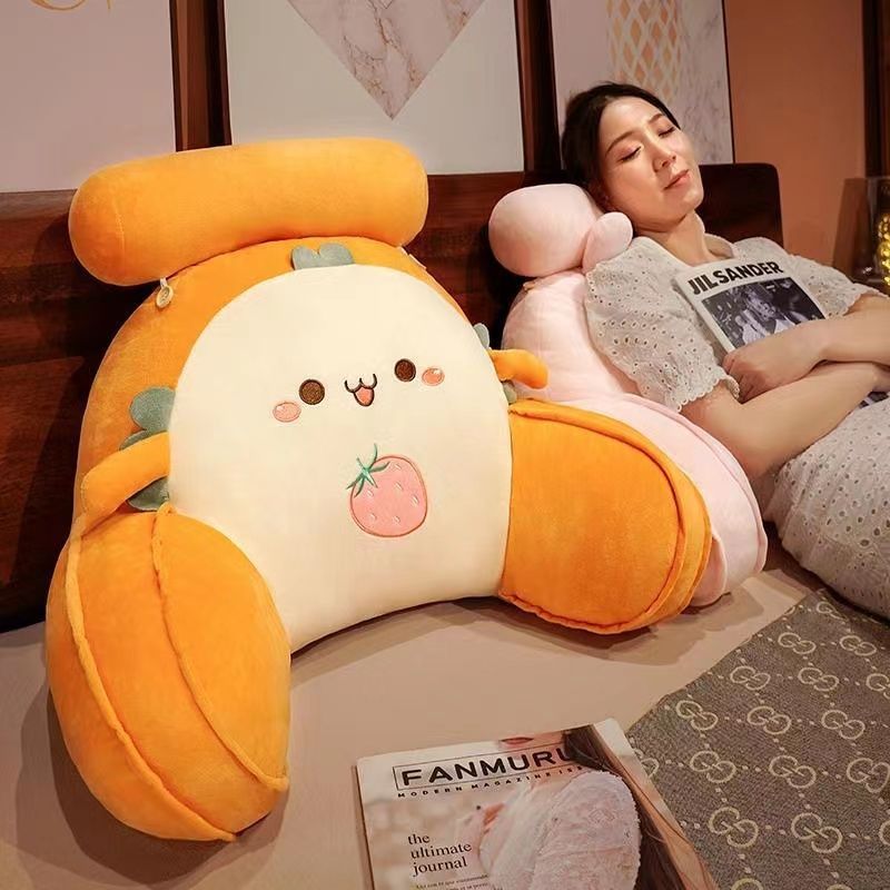 厚い漫画の抱き枕のソファーは枕に寄りかかってかわいい女の子のクッションカバーの背もたれをカバーします。