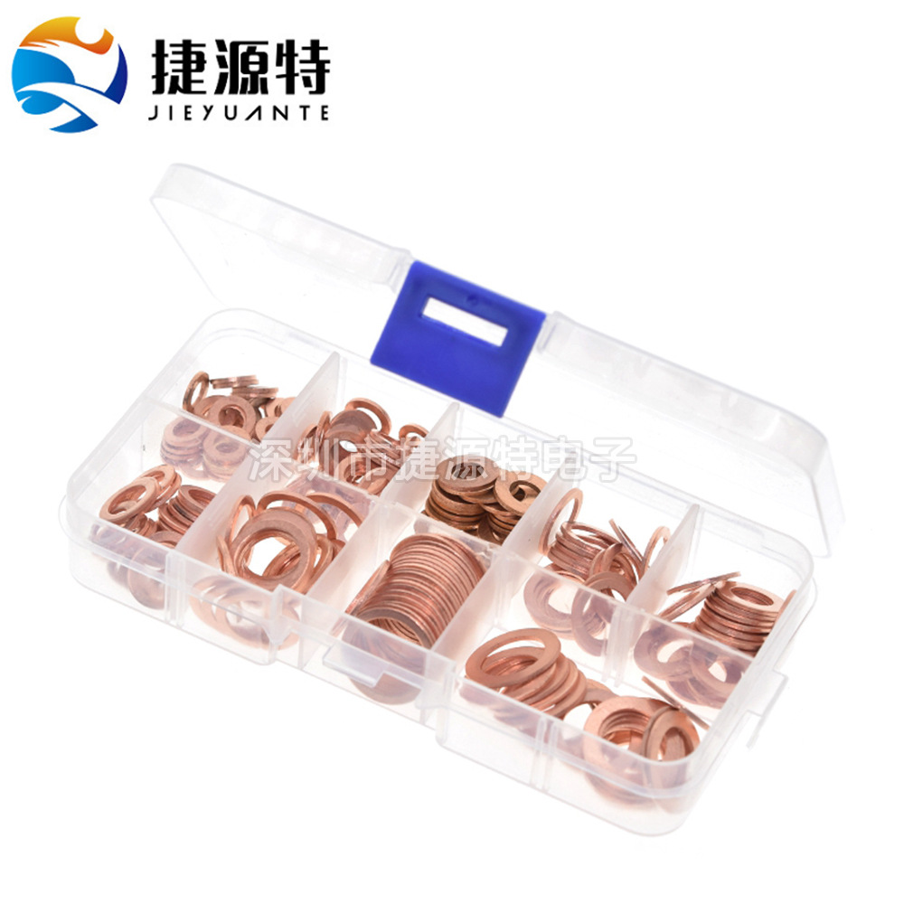 200PCS紫銅オイルシールガスケット箱入り銅スペーサーフラットワッシャーセット紫銅シールセット銅パッド