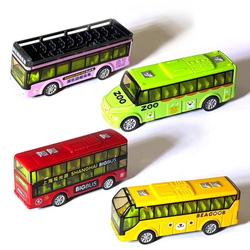 創意漫画回力バス合金車模型子供玩具遊園地観光車動物車玩具車