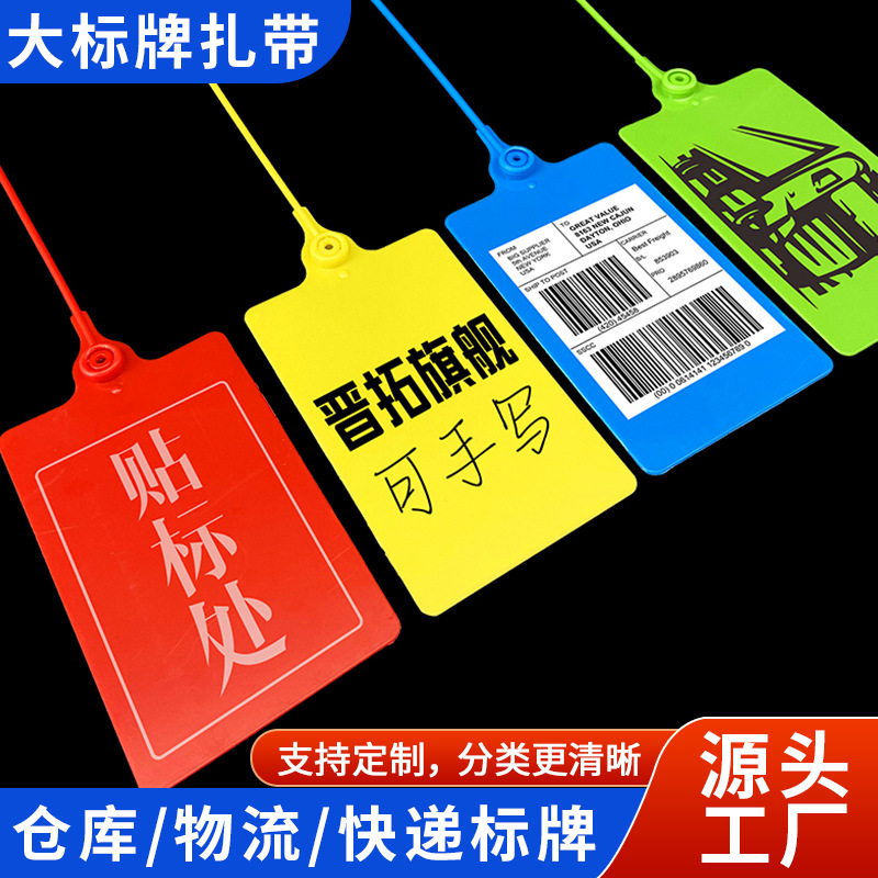 卸売り規格105*65一体式プラスチック吊り札ラベル使い捨て宅配便物流大札結束帯