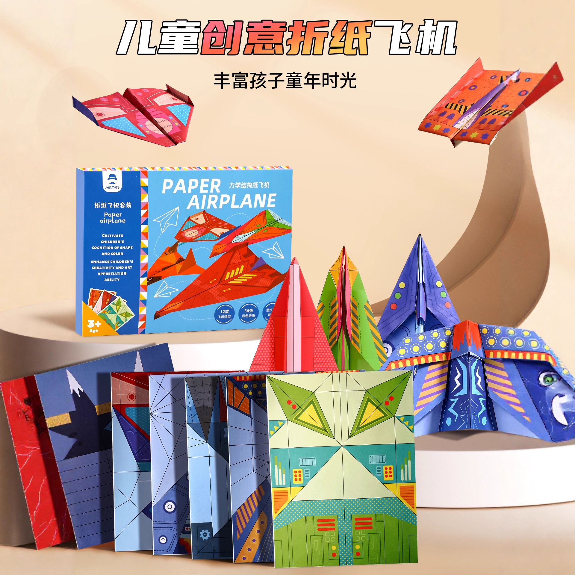 紙飛行機専用折り紙子供手作り3d立体色紙男の子玩具幼稚園知育思考訓練