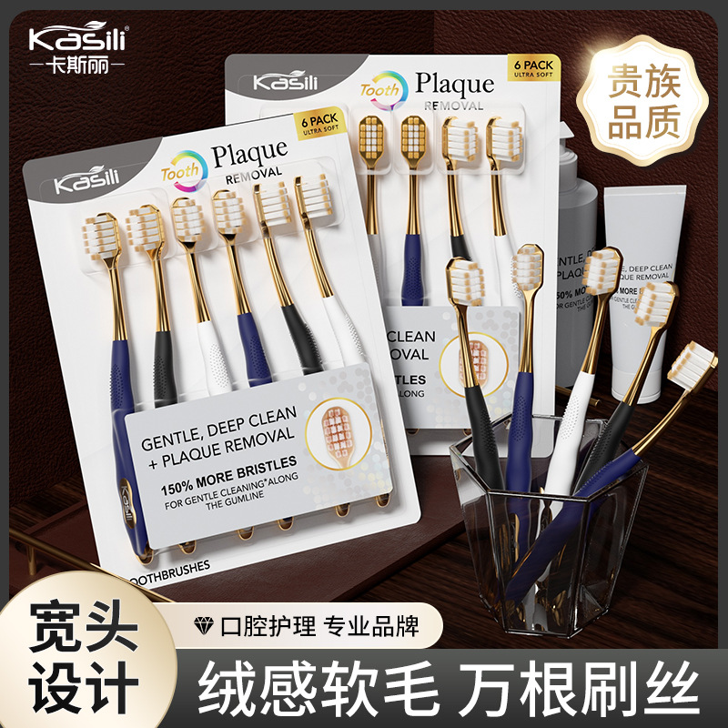 6本入* Casley ホーム ワイドヘッド 角穴 万毛 柔らか毛歯ブラシ 高級 大人用