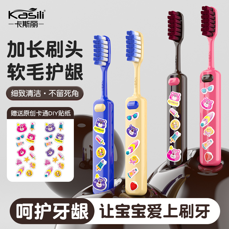 Casley 【革新的なロングヘッド歯ブラシ】小学生、家庭、子供、柔らかい毛の歯ぐき保護、赤ちゃん、幼児、2~12歳