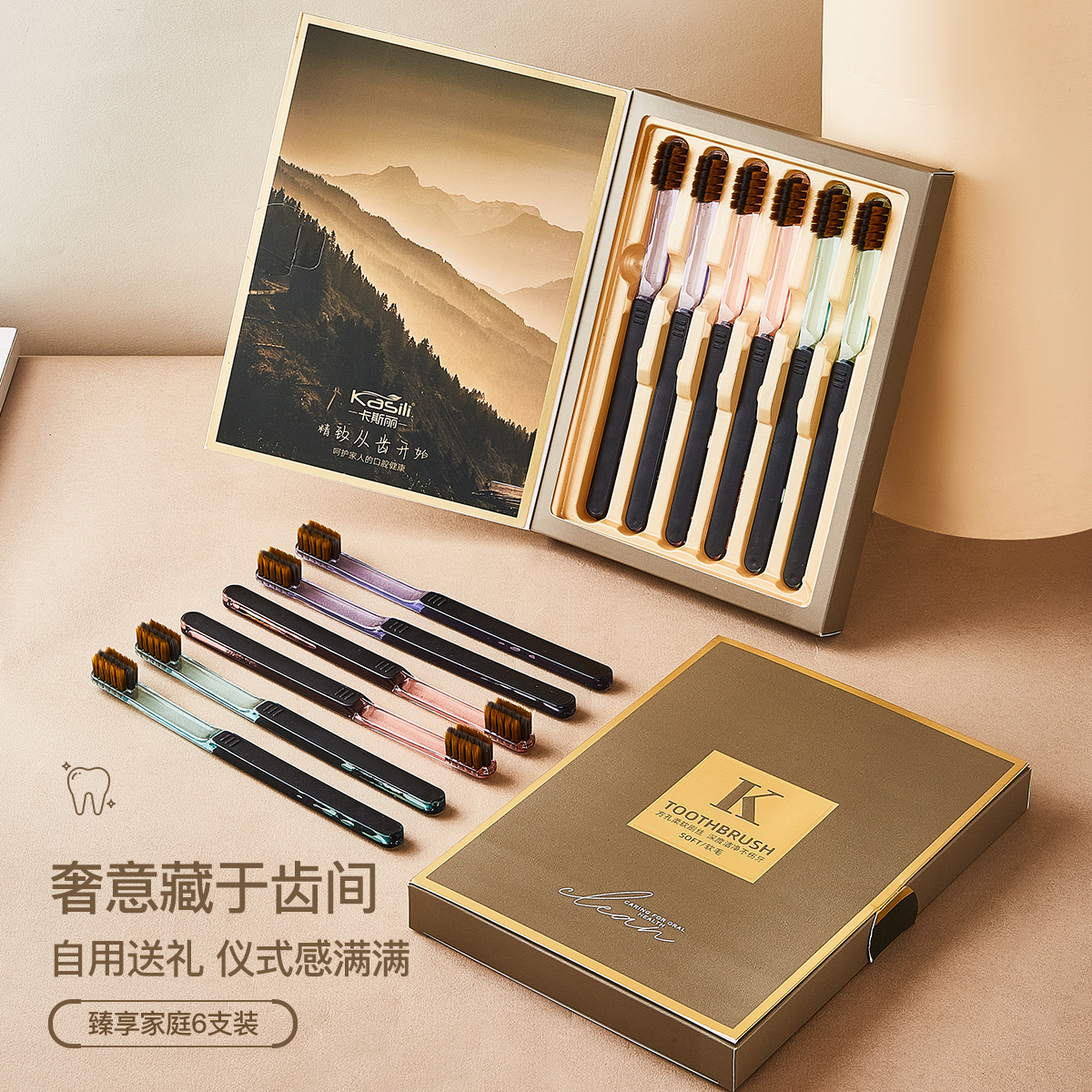 [6個ギフトボックス] Casley スーパーハイエンドギフト大人用歯ブラシ、大きな穴、柔らかい毛、柔らかい歯肉保護とクリーニング