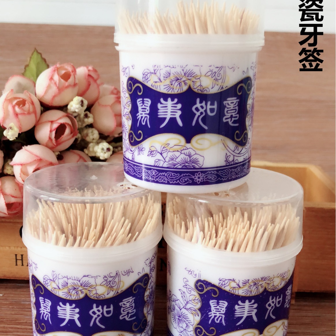 【半瓶】青花磁器のつまようじ桶につまようじを入れます。