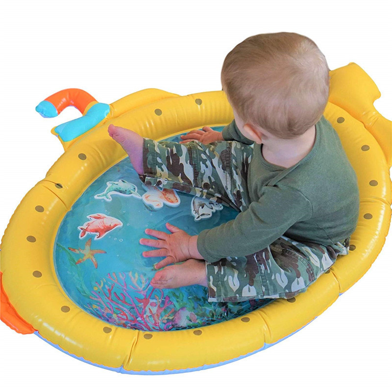 空気入り潜水艦は水をたたいて屋外の子供の水遊びをします。