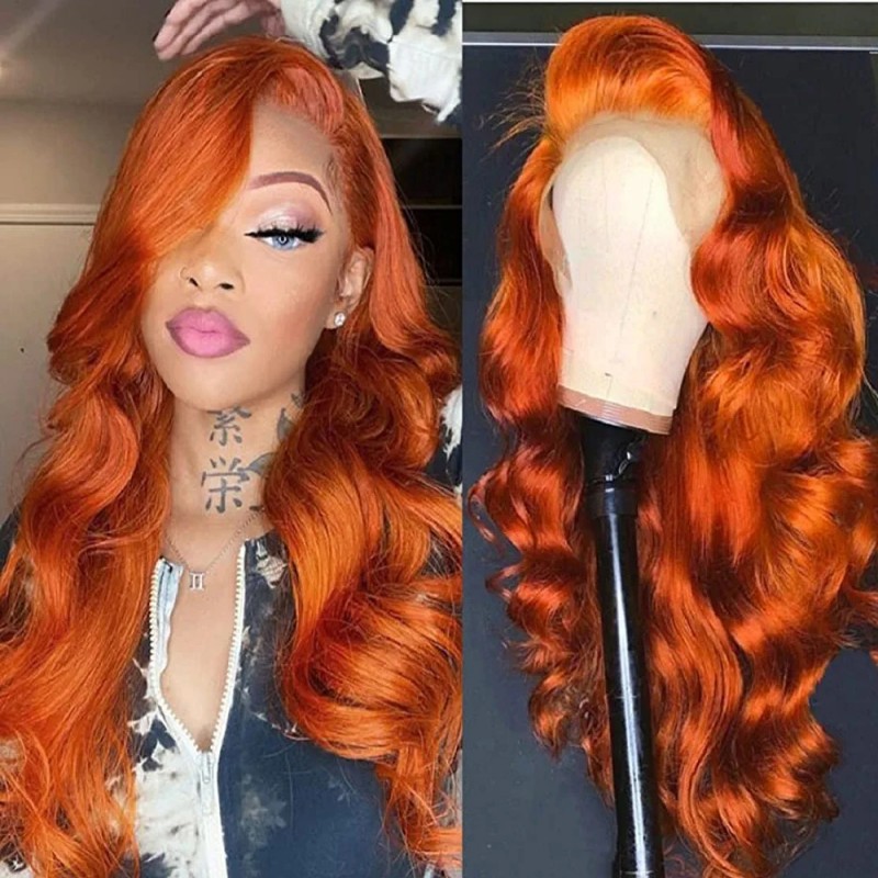 12aヒューマンヘア350 # オレンジカラー13*4レースフロンティアストレート