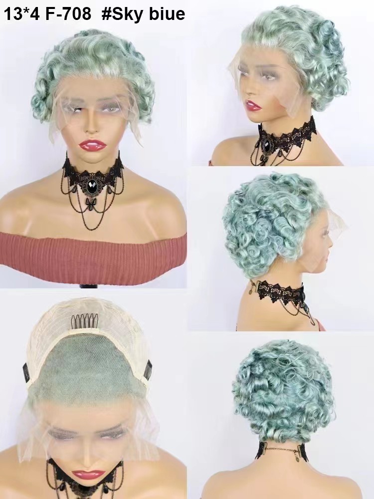 12aショートカットキュリーカラーウィッグレースフロンティアウィッグ