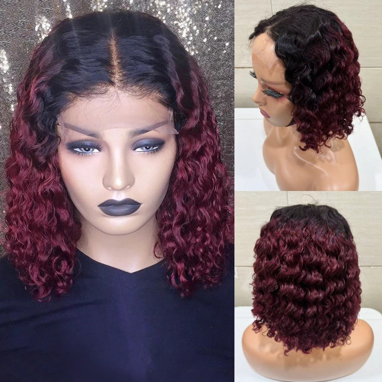 ボーンストレイトレースフロンティアウィッグショートボブ1BT27ヒューマンヘア