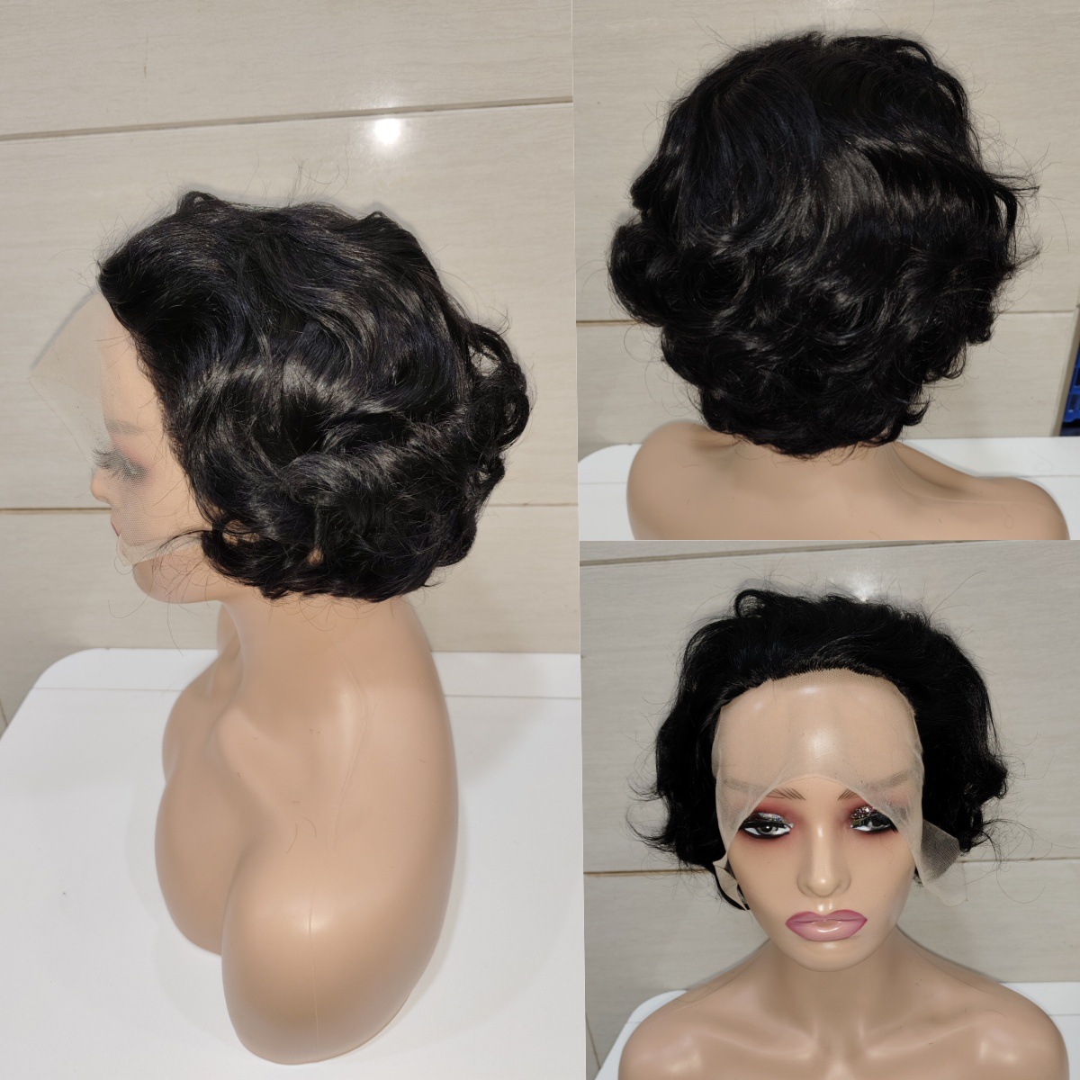 13*1レースピクシールーズショートウィッグ100% ヒューマンヘア