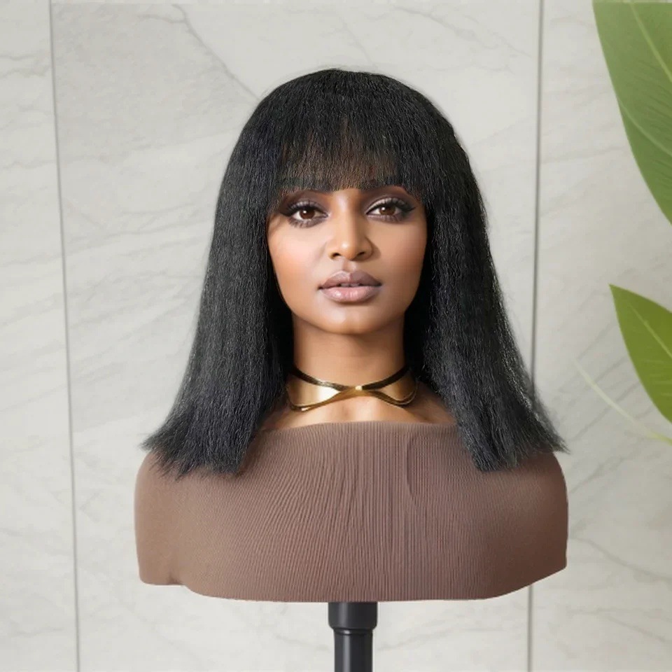 4*1lace fringe Kinky straightボブヤキ・ブラザリアン・ヒューマン・ヘア