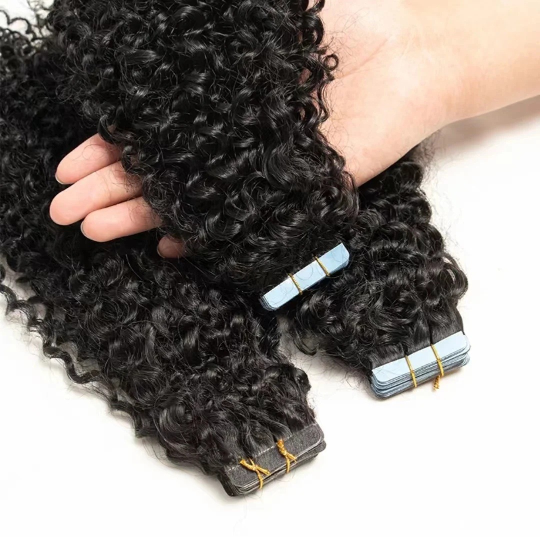 人間の髪のエクステンションの水の波のテープ レミー カーリー スキン ヘア エクステンション