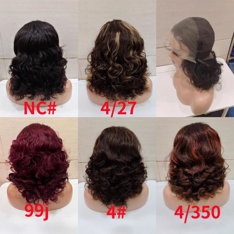 12A Pixieウエーブ・ボブ13*4フロンタル・レース・ブラジアン・ヒューマン・ヘア・200