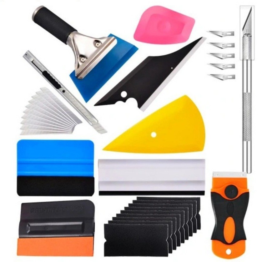 クールナイス自動車フィルムツール19点セットフェルトスクレーパーガラススクレーパーゴムスクレーパーカッター美工刀