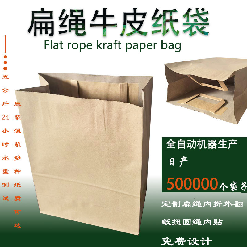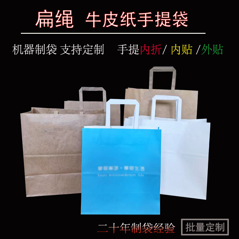カスタマイズされた厚みのあるクラフト紙フラットロープインナー折りたたみ紙袋ワイドロープテイクアウト包装紙袋大型衣類ハンドバッグ