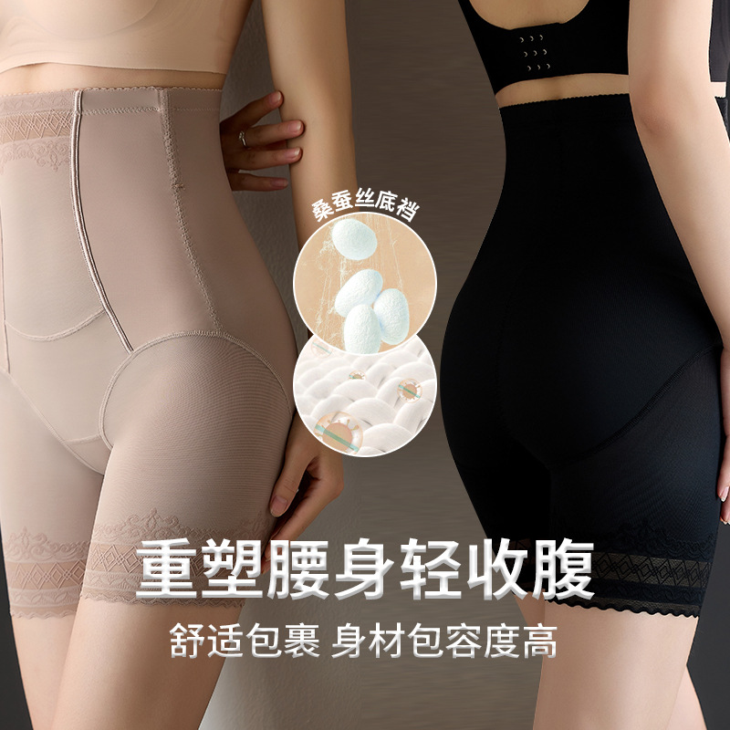新しいハイウエストおなか引き締め薄いレースヒップリフティング下着アイスシルクシームレスコットンクロッチシェイプパンツはカールせず通気性があります