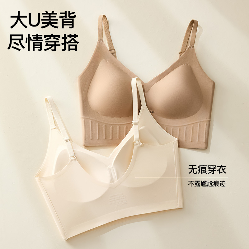 女性用美しい背中の下着、白い細いショルダーキャミソール、チューブトップ、露出防止、夏用の薄いアイスシルクシームレスブラ