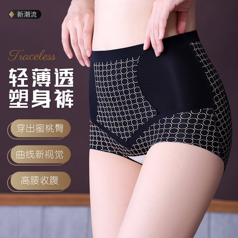 新商品の軽豪華高腰裸感は腹のズボンの女性の綿の股の産後の傷がなくて腰を束ねて尻を持ち上げて身の平角のズボンの薄い金を作ります。