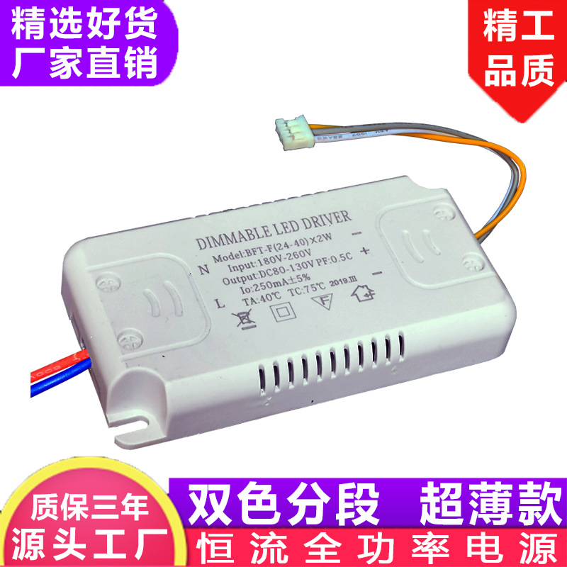 スポット卸売り20-40w * 2超薄型2色段階調光電源非絶縁定電流三色駆動