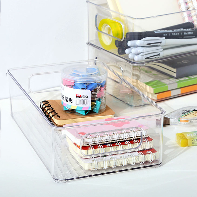 Petプラスチックボックス学生寮文房具整理浴室キッチン重ね透明化粧品収納ボックスデスクトップ