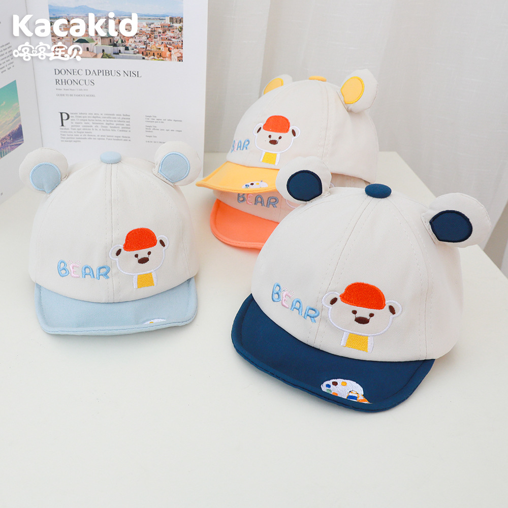 赤ちゃんの帽子の薄い帽子の男女の赤ちゃんのかわいい漫画の熊の日よけのアヒルの舌の子供の野球の帽子