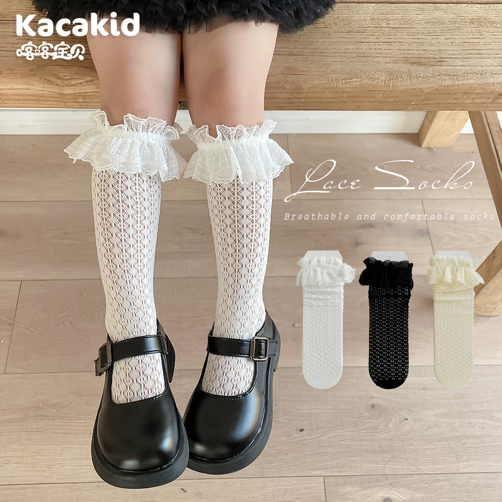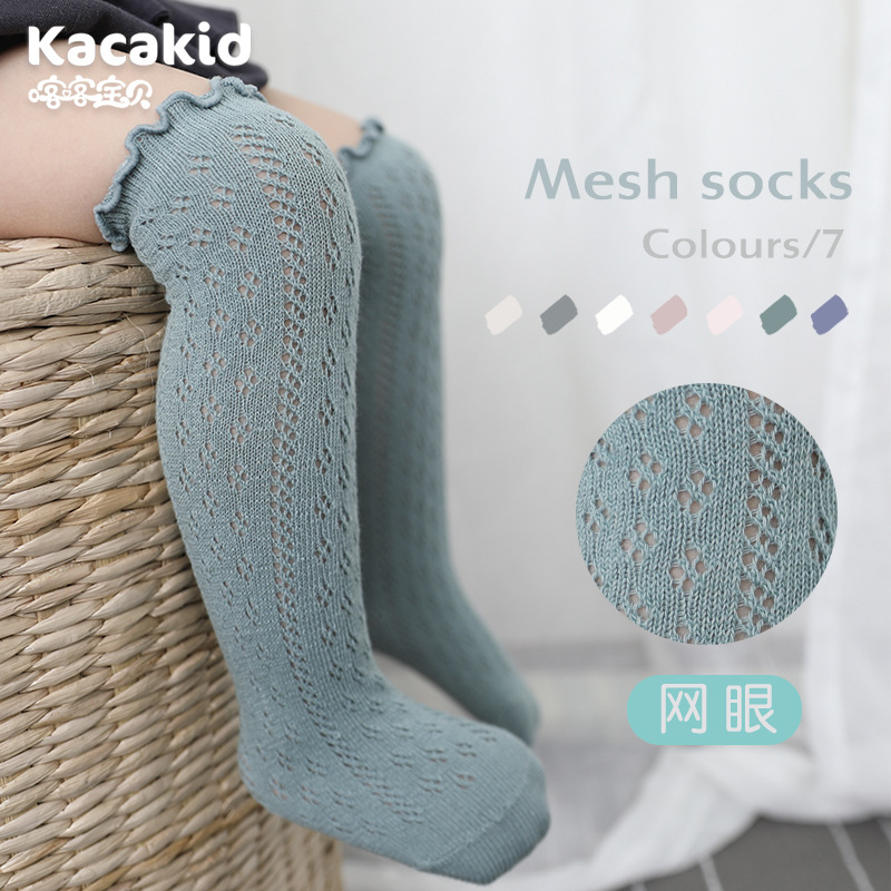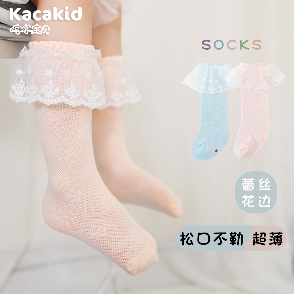 ベビーソックス春と夏の薄い通気性のある女の子の靴下レースフリル韓国スタイル中空プリンセスソックスミッドチューブソックス