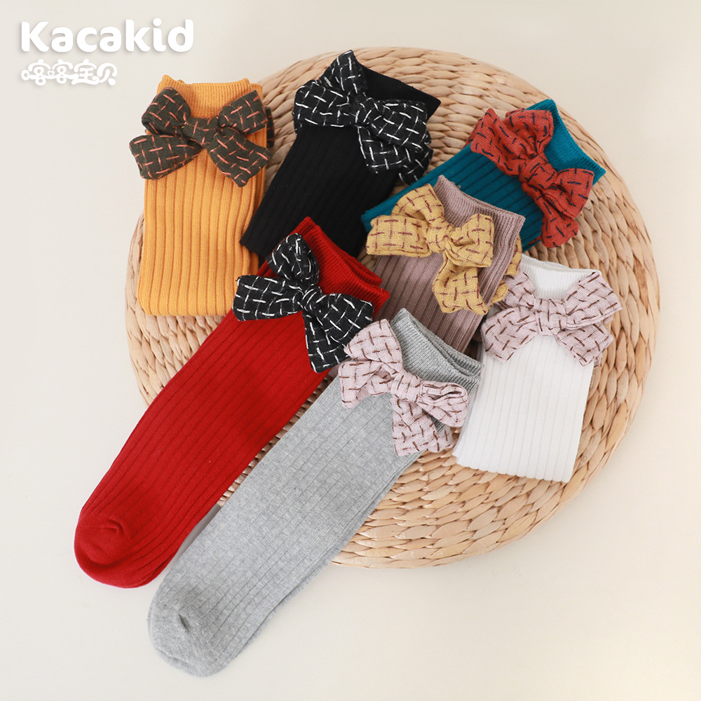 新しい女の子の蝶結びの中筒の靴下の春の赤ちゃんのA類はとストレートの筒の綿の靴下の子供の乳幼児の靴下の卸売りがありません。