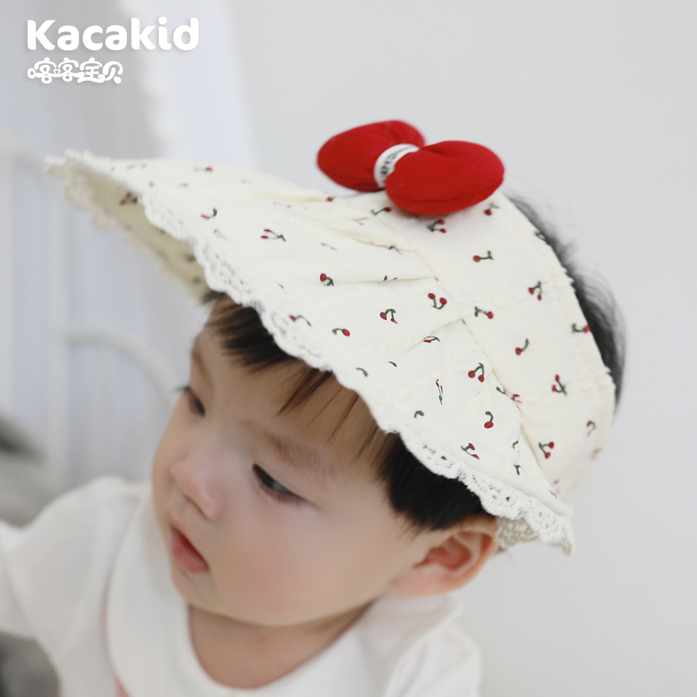 ベビー夏の新しい子供用帽子甘いプリントサンシェード盆地帽子レース女の子チェリーラブ空の帽子