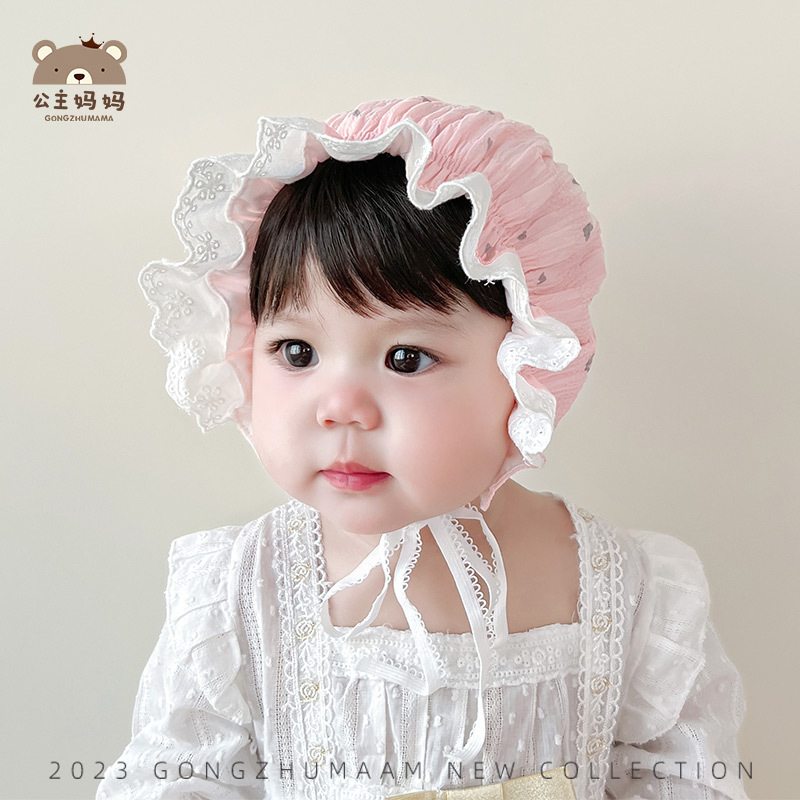 プリンセス風子供帽子2023春夏赤ちゃん帽子漫画愛透かし彫りレース女の子赤ちゃん日焼け止め日除け盆帽子