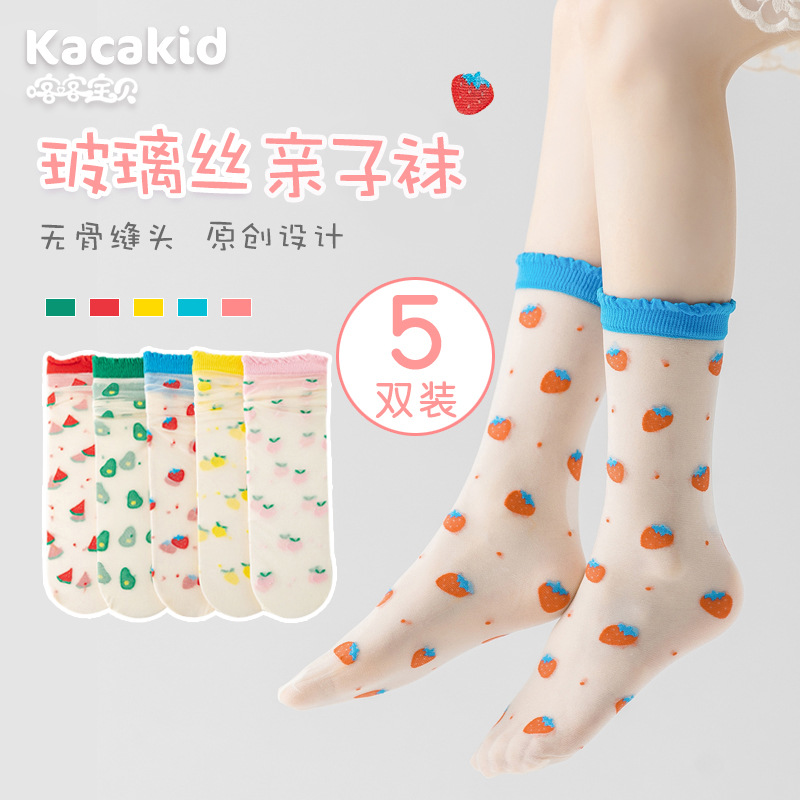 5足の子供の夏の薄いタイプの水晶の靴下のカードの短い靴下の女の子のガラスの氷の糸の通気性の綿の靴下