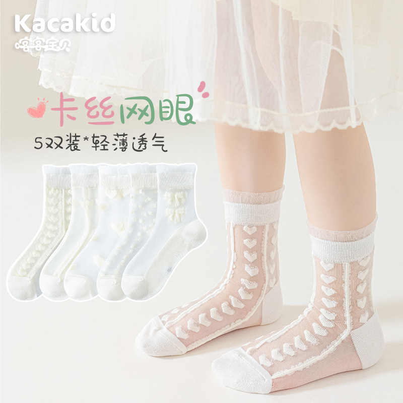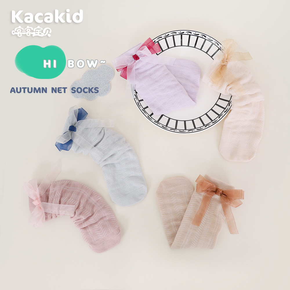 子供用ミッドカーフソックス夏の女の子通気性メッシュリボンプリンセスパイル綿ソックスベビーソックスベビーソックス