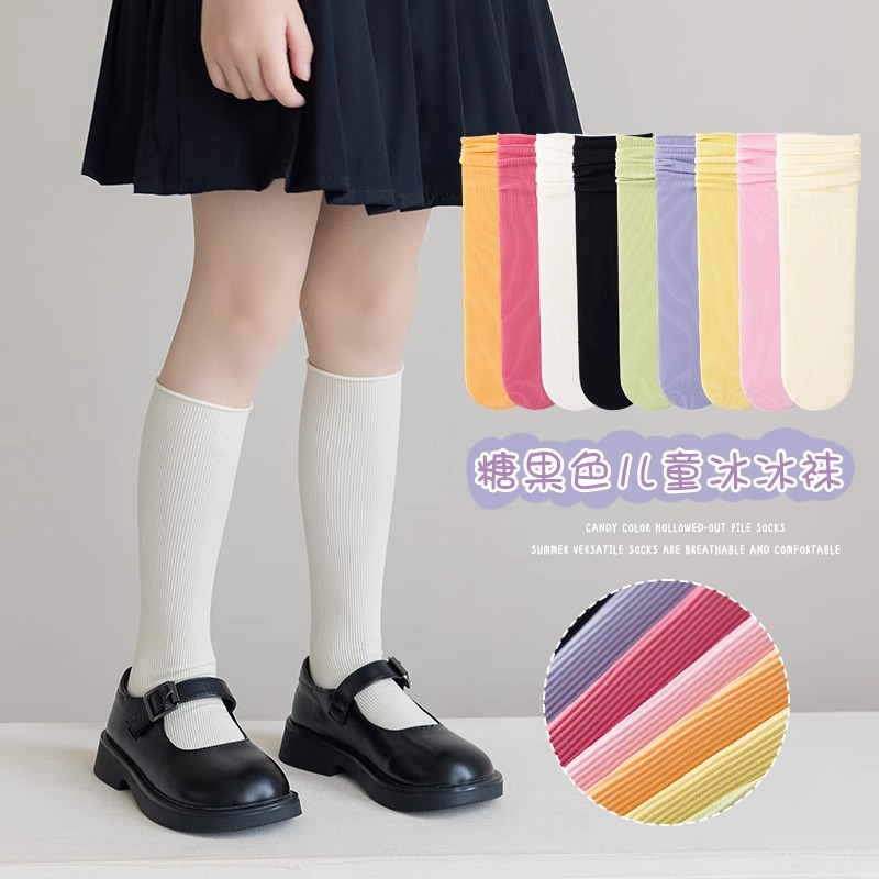 ベルベットアイスソックス女の子ミッドチューブパイルソックス夏ドーパミン子供の靴下夏薄いベビーふくらはぎソックス