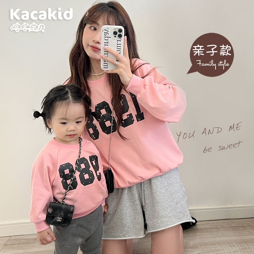 親子のカーディガンの秋の新型子供の綿のプルオーバーの女の子の数字の1988母の婦人服の同じ長袖の上着